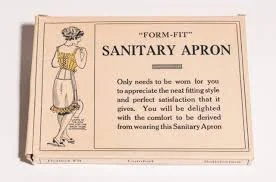 It wasn’t until the very end of the 19th century that commercial sanitary products began to emerge. Below are photos of a Sanitary Apron and a Sanitary Belt, both considered to be early mass marketed products. The belt was actually used in a modernised form until the 1970s and was designed to hold together disposable pads made of cotton and gauze.
